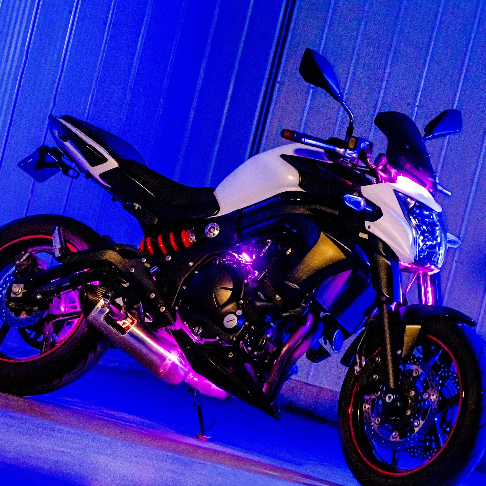 Give your ride the personality it deserves. The Alpena MotoLED Flow adds your style and mood to your vehicle! These LED Flow light strips install universally on cars, motorcycles, mopeds, ATVs, scooters, or any other motorsport vehicle using high-quality 3M peel and stick adhesive backing. They are also perfect for customizing and illuminating the engine bays and grills on regular street vehicles! They light up any space and make it easier to work, with a little touch of color. Bring home a set of Alpena MotoLED light strips and add the ability to customize your ride in no time.