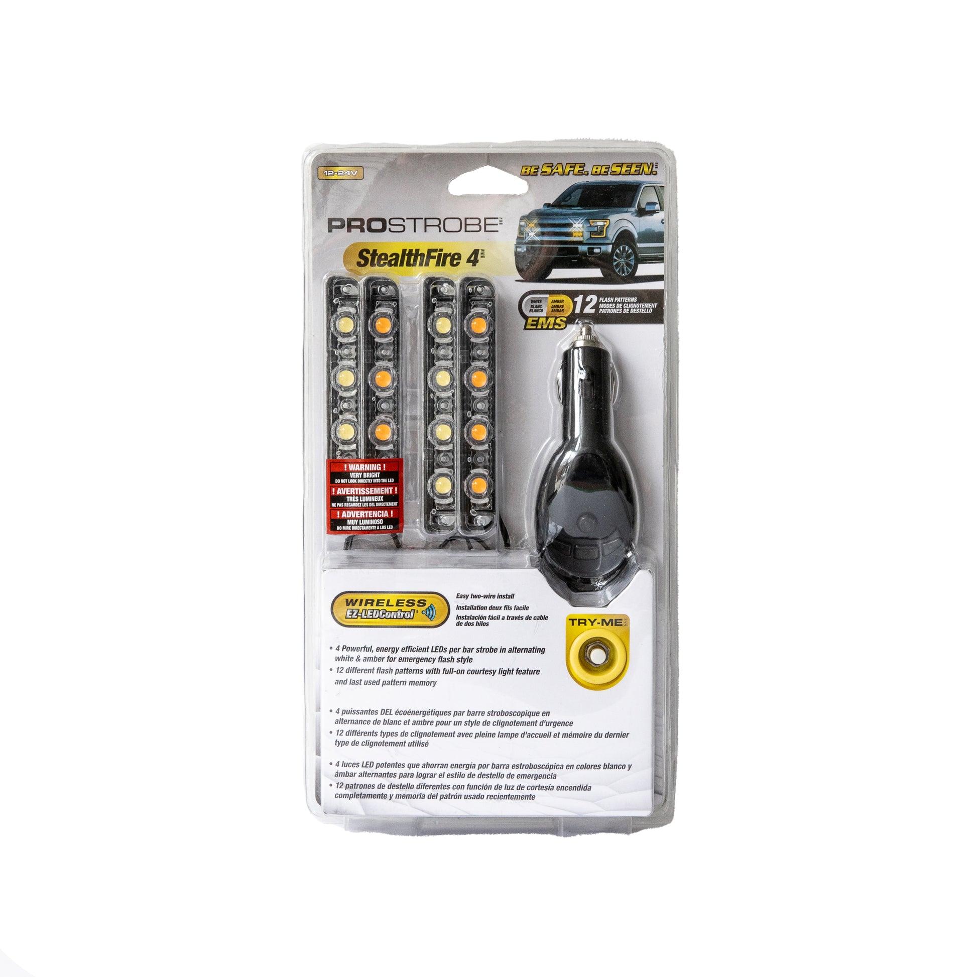 Stealth Fire Dual-Color LED Strobe Light – 4 High-Power White & Amber LEDs with Remote, Compact 12V Safety Light by Prostrobe